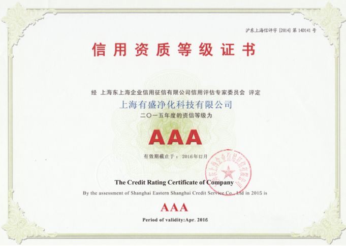 上海有盛凈化信用資質(zhì)等級(jí)證書(shū)